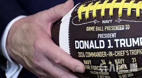 뉴시스 보도에 따르면, 17일(현지시각) 데일리메일에 따르면, 지난 15일 트럼프 대통령은 미 해군사관학교 풋볼팀에 트로피를 수여하는 행사에 참석했다.