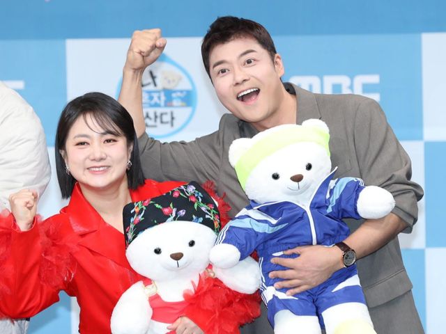방송인 박나래와 전현무(오른쪽)가 2023년 서울 상암동 MBC 골든마우스홀에서 열린 예능프로그램 '나 혼자 산다' 10주년 기념간담회에서 포즈를 취하고 있다. / 뉴스1