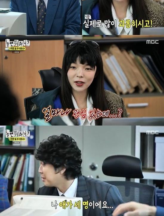 박진주는 "그거는 기자님이 내신 거다"고 말하면서도 "실제로 하하 님이 많이 괴롭히신다"라고 덧붙였다. 이에 하하가 "그게 괴롭히는 거냐. 관심이다"라고 하자 박진주는 "얼마나 관심 있는데?"라며 대뜸 플러팅을 건넸고, 하하는 "내가 애가 세 명이다"며 당황했다.