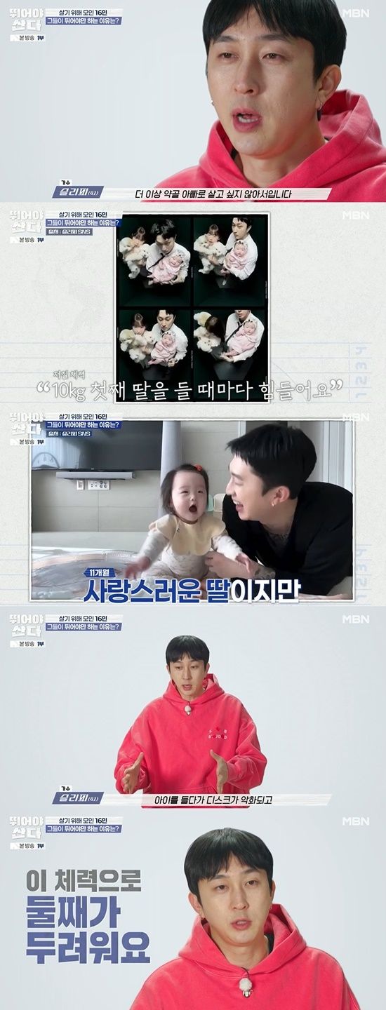 이어 래퍼 슬리피가 등장했다. 그는 달리기에 도전하는 이유에 대해 "더 이상 약골 아빠로 살고 싶지 않다"며 "첫째 딸이 10kg 정도 됐는데 들 때마다 힘들다"며 현실적인 고민을 털어놓았다.