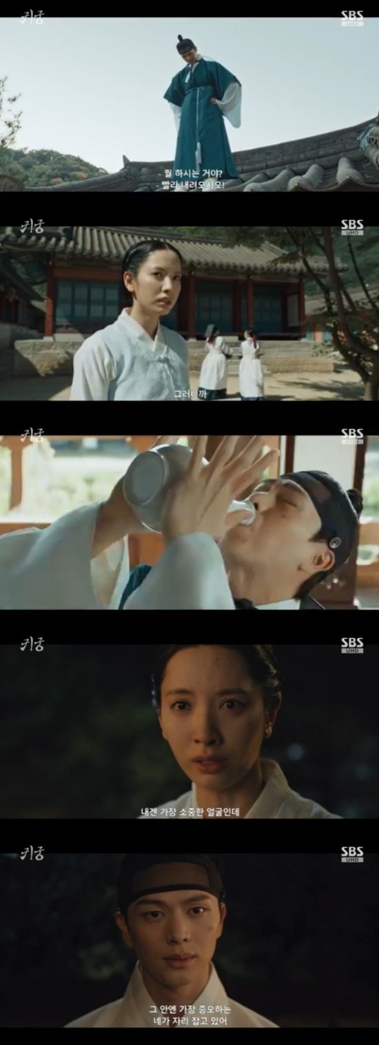 19일 방송된 SBS 금토드라마 '귀궁' 2회에서는 이무기 강철이에 빙의 된 윤갑(육성재 분)과 여리(김지연)가 함께 입궐했다.