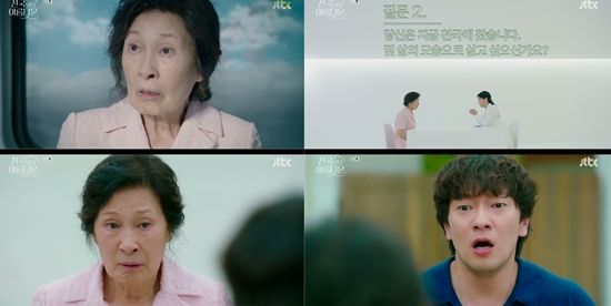 남편을 만나러 가는 길, 이해숙은 80세 나이로 온 탓에 무릎은 삐걱댔지만 가슴은 두근거렸다. 남편의 말대로 길을 따라 가지런히 쌓인 돌담과 환하게 핀 능소화가 반기는 집이 나타났고, 두 사람의 이름이 나란히 새겨진 문패를 보며 이해숙은 고낙준도 같은 마음으로 자신을 기다리고 있음에 안도했다. 하지만 그 문을 열고 나타난 이는 30대의 젊은 시절로 돌아간 고낙준이었다. 서로가 서로를 예기치 못한 모습으로 마주하게 된 이해숙, 고낙준의 ‘웃픈 재회’가 다음 회에 대한 궁금증을 증폭시켰다.