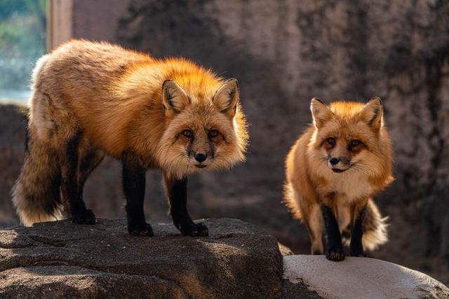 자료사진. 서울어린이대공원의 붉은여우 남매 '동이'(왼쪽. 수컷)와 '희망이'(오른쪽). / 서울시설공단 제공