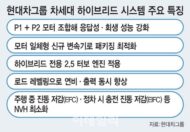또한 현대차그룹은 차세대 하이브리드 시스템 변속기의 허용 토크를 기존 37.4kgf·m에서 46.9kgf·m로 약 25% 높여 고배기량 터보 엔진 결합 시 최대 토크를 자연스럽고 강력하게 발휘할 수 있도록 했다.