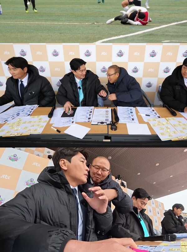 그런가 하면 감독들은 말도 안하고 경기를 지켜보며 자신의 베스트 11을 구상하기 바빴다는데. 이때 박항서는 안정환, 김남일, 이동국의 라인업 강탈을 시도하며 모두를 폭소하게 한다. 카리스마 넘치는 레전드 감독에서, 후배들도 혀를 내두르게 한 ‘항쪽이’가 된 박항서의 라인업 강탈 현장이 궁금해진다.