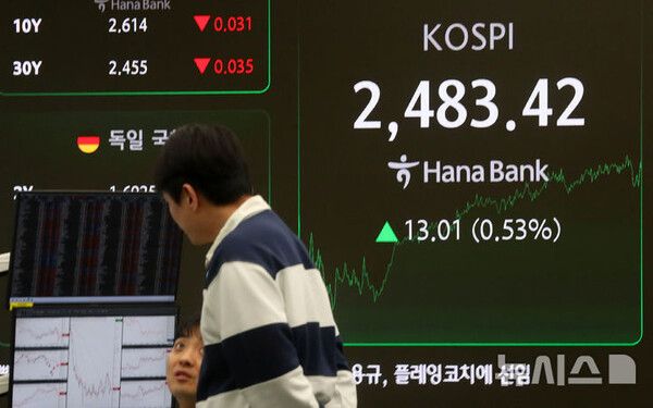 뉴시스 보도에 따르면, 20일 한국거래소에 따르면 지난주 코스피는 전주(2432.72) 대비 50.70포인트(2.08%) 상승한 2483.42에 거래를 마쳤다.