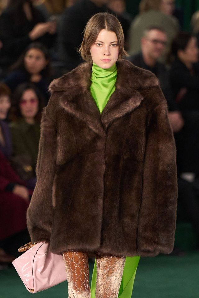 나타샤 진코는 산타클로스의 선물 포댓자루처럼 어깨에 걸쳐 메는 유쾌한 스타일링을 보여줬습니다.