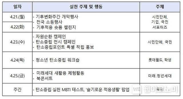 (웹이코노미) 환경부는 지구의 날(4월 22일)을 맞아 4월 21일부터 25일까지 ‘2025년 기후변화주간’을 운영한다.