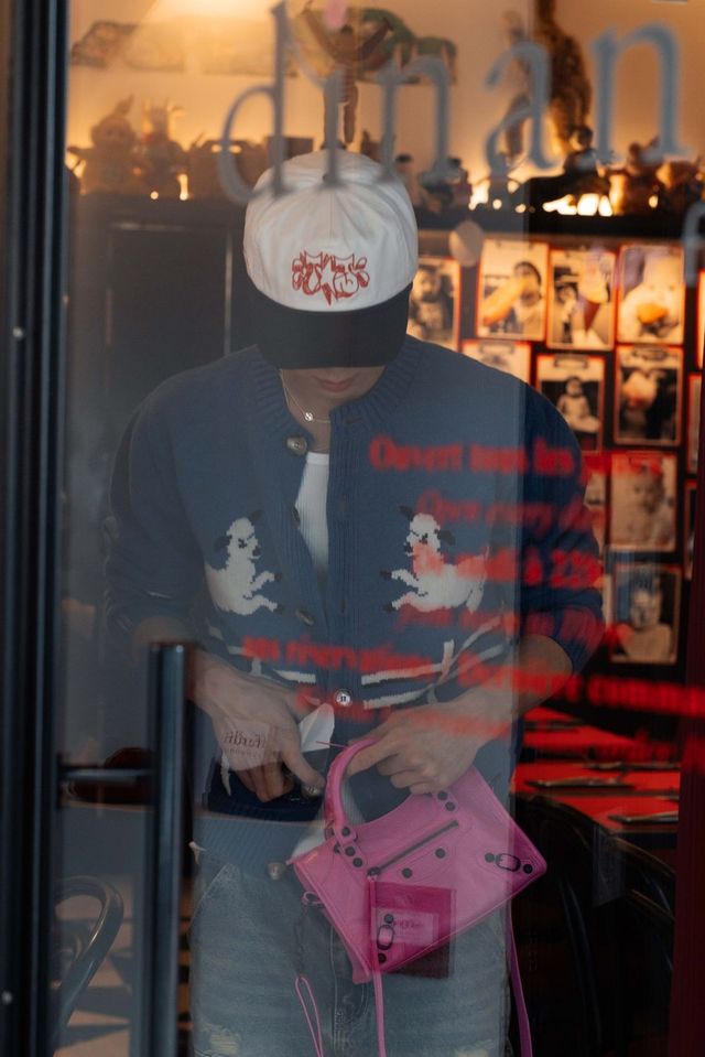 특히 눈길을 끈 건 한 손에 든 핑크 컬러의 가방이다. 이 가방은 발렌시아가에서 출시한 르 시티 미니백으로 알려졌다.