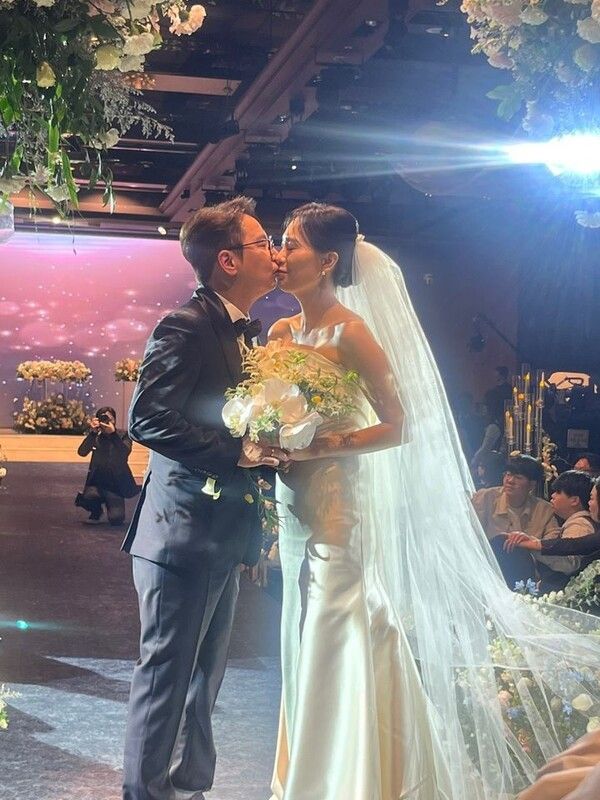 공개된 사진 속에서 순백의 오프숄더 드레스를 입은 신부 정영림 씨는 우아한 자태를 뽐냈고, 듬직한 턱시도를 차려입은 심현섭은 행복한 미소로 화답했다. 심현섭은 하얀 부케를 든 정영림 씨에게 입을 맞추며 영원한 사랑을 약속하는 듯 훈훈한 분위기를 자아냈다.