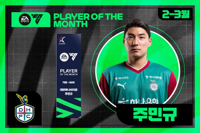 주민규는 울산HD 소속이던 2023년 2~3월 이후 개인 통산 두 번째로 이달의 선수상을 받았다. 당시 주민규는 울산 유니폼을 입자마자 맹활약하며 이달의 선수상을 받았다. 이번에도 대전으로 이적 직후 이달의 선수상을 손에 넣었다. 대전은 구단 최초로 이달의 선수를 배출하는 기쁨도 맛봤다.
