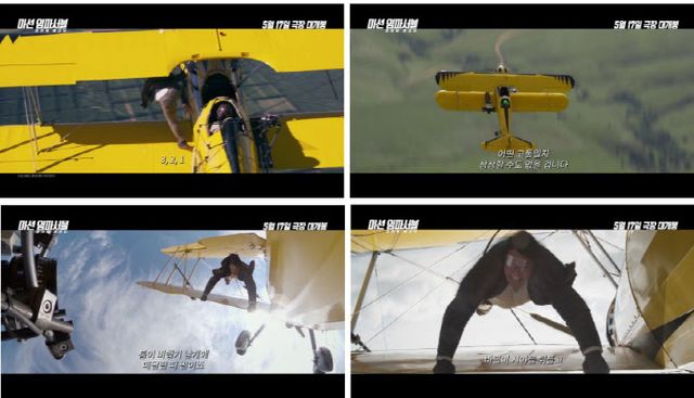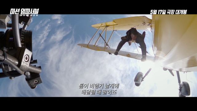 무려 2438미터(8,000피트) 상공에서 시속 225km의 거센 바람 속 비행기의 한쪽 날개에 위태롭게 매달린 톰 크루즈의 모습은 보는 이마저 손에 땀을 쥐게 하는 경탄을 자아낸다. 엄청난 바람으로 인해 시야가 왜곡되고 정상적으로 호흡하는 것조차 불가능한 극한의 상황 속에서도 CG 없이 직접 촬영에 임하는 톰 크루즈의 모습은 작품을 향한 놀라운 열정을 가늠케 한다. “어떤 고통일지 상상할 수도 없을 것이다.”, “바람이 시야를 뒤틀고, 숨을 쉬는 건 불가능에 가깝다.” 라고 전하는 제작진의 이야기는 최고의 액션을 위해 모든 것을 건 톰 크루즈의 도전 정신을 보여준다. 계속해서 회전하는 비행기와 얼굴을 강타하는 거친 바람에 맞서 굳은 의지로 버텨내는 톰 크루즈의 압도적 활약은 심장을 뛰게 하는 뜨거운 전율과 전에 없던 영화적 쾌감을 선사할 것이다. 톰 크루즈의 고공비행 액션 비하인드 영상 공개로 시리즈 사상 역대급 스케일을 예고하고 있는 영화 ‘미션 임파서블: 파이널 레코닝’은 극강의 액션 쾌감으로 전 세계 극장가를 매료시킬 것이다.