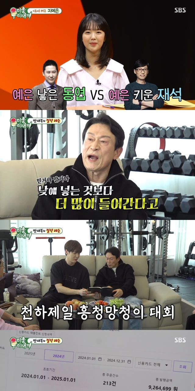 알뜰함과는 전혀 거리가 먼 ‘흥청이 3인방’ 최진혁, 김희철, 김준호가 절약의 노하우를 배웠다. 한데 모여 가계부를 쓰기 시작한 세 사람. 김준호가 “다이아 할부로 산 건 어떻게 쓰냐”라고 고민하자 서장훈은 “아직 지민씨 소유가 아닌가 보다”라며 웃음을 참지 못했다. 한편 김희철은 모바일 게임 ‘현질’에 몇 십만 원씩 쓰는 지출이 밝혀지며 최악이라는 비난을 들었다.