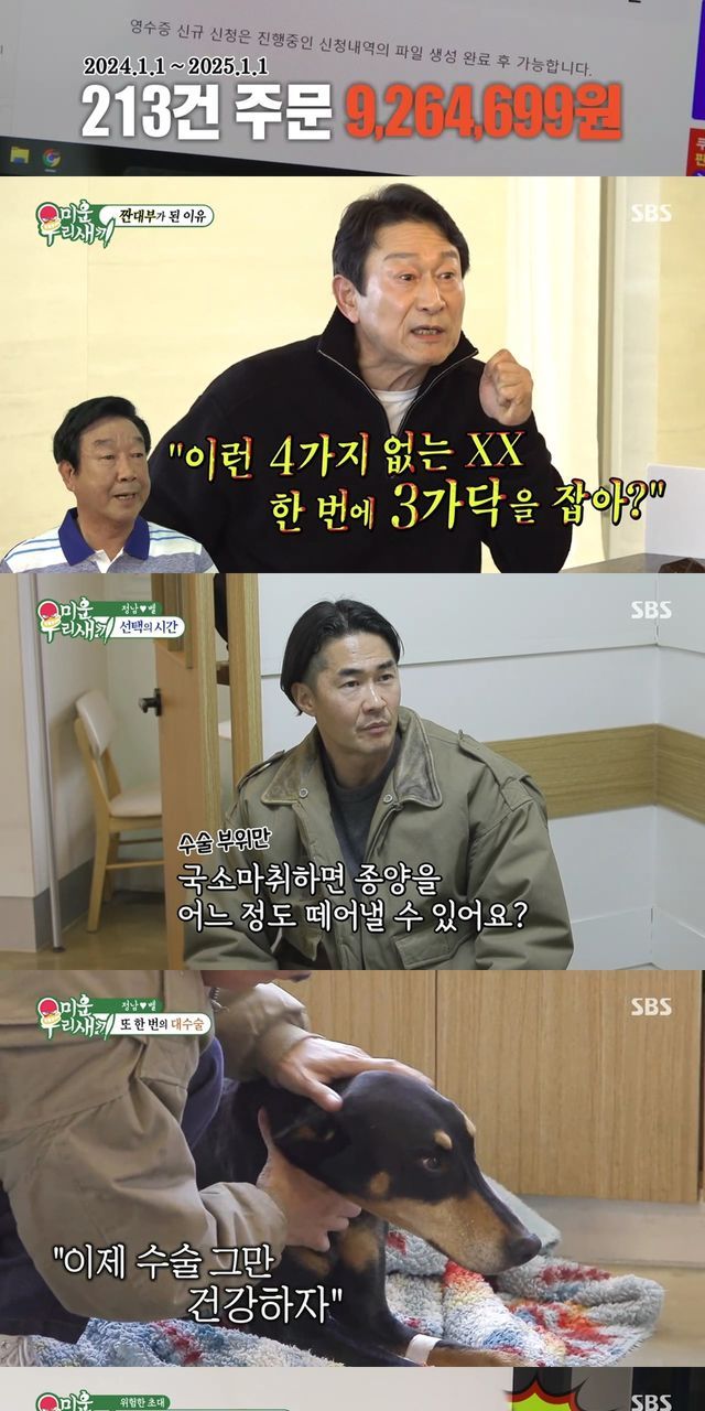 전신마비를 이겨낸 기적의 반려견 벨이 악성종양 제거 수술을 받게 된 안타까운 사연이 전해졌다. 고령의 나이와 약해진 심장 때문에 다른 개들보다 100배 이상 위험하다는 의사의 의견에 배정남은 한참을 고민하다 국소마취 수술을 선택했다. 생각보다 길어지는 수술시간에 배정남은 물론, 스튜디오의 母벤져스도 초조함을 감추지 못했다. 다행히 종양이 완전히 제거되었다는 소식에 배정남은 가슴을 쓸어내렸다.
