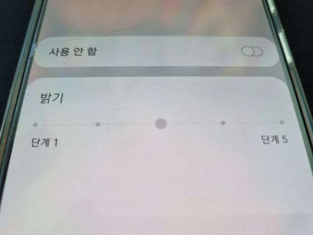 어두운 공간에서 후레시 기능 자주 쓴다. 하지만 기본 밝기가 너무 세거나 약할 수 있다. 밝기 조절도 가능하다. 상단 메뉴에서 후레시 아이콘을 1초 정도 누르면 밝기 조절 메뉴가 열린다. 총 5단계로 나뉘며, 상황에 맞게 조절할 수 있다. 야외에선 밝게, 실내에서는 낮게 설정하면 배터리 소모도 줄이고 눈부심도 피할 수 있다.