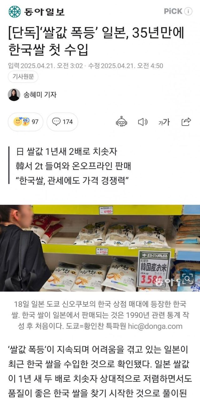 결론:일본 틀딱 쌀숭이 표 받으려고 자민당에서 쌀값 하락 방지하는 계획경제 밀어서 이 지경이 남