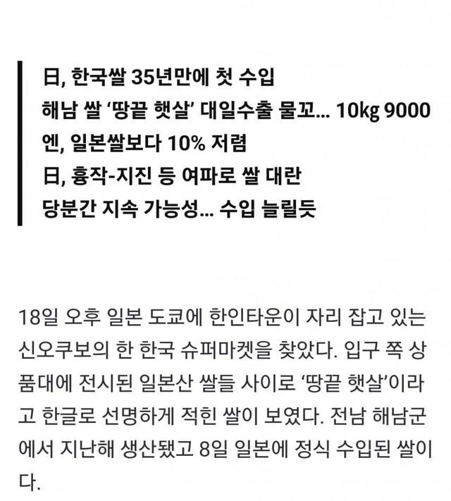 일본의 쌀값 폭등은 간단히 말해서 쌀값 하락을 막아서 쌀숭이 수호해서 노인 표 받아먹으려는 자민당의 포퓰리즘임