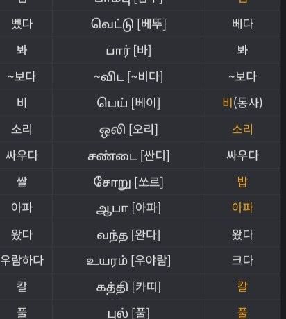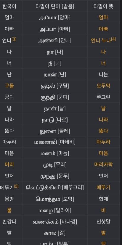 한국어와 세계에서 가장 비슷한 타밀어만 봐도 유사성이 매우 높음