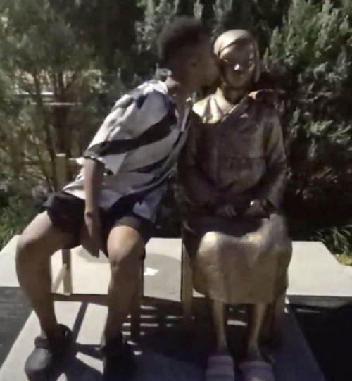 또한 평화의 소녀상에 입을 맞추고, 방송 중 욱일기를 펼치는 등 한국 국민의 정서를 자극하는 행동도 서슴지 않았다.