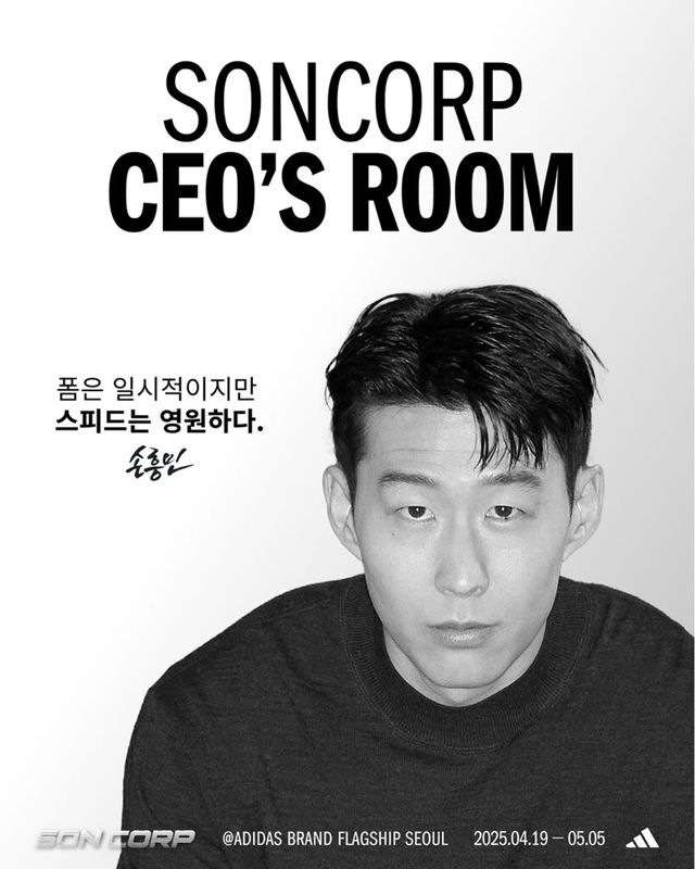 아디다스는 이번 ‘태극7’의 론칭을 기념해 4월 19일부터 5월 5일까지 아디다스 브랜드 플래그십 서울에서 ‘SON CORP’ 콘셉트의 SON CORP CEO’S ROOM 팝업 이벤트를 진행합니다. 이번 팝업은 ‘SON CORP’의 CEO인 손흥민의 방을 구현한 전시 공간으로 구성되었습니다. 손흥민의 커리어를 확인할 수 있는 전시와 함께 그의 소장품을 직접 만나볼 수 있어 특별한 의미를 더했죠. 월드컵 데뷔전과 EPL 골든부츠 수상, EFL 코너킥 골 당시 착용했던 축구화 10족과 함부르크 SV, 레버쿠젠 소속 시절 중요한 골들을 기록한 경기에서 착용한 유니폼 10착, 그리고 두 번째 시그니처 축구화 ‘태극7’ 등 손흥민의 역사적인 순간들을 생생하게 전합니다.