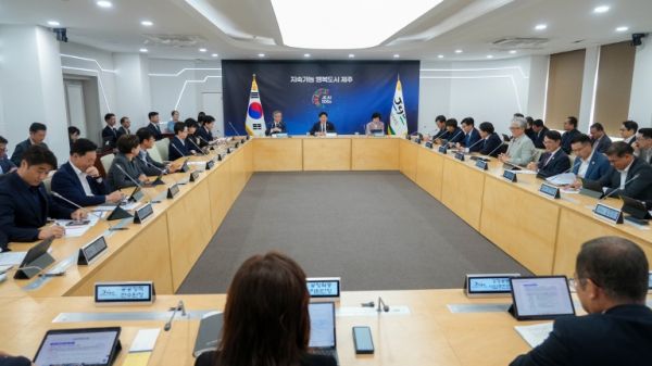 오영훈 지사는 21일 주간 혁신성장회의에서 도 차원의 RE100 달성의 의미를 평가하고, 분산에너지 특구 지정의 필요성을 강조했다. 또한 전기차 보급 확대와 관광 성수기 대비 등 주요 현안도 논의했다.