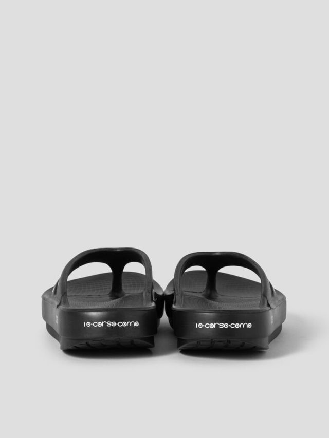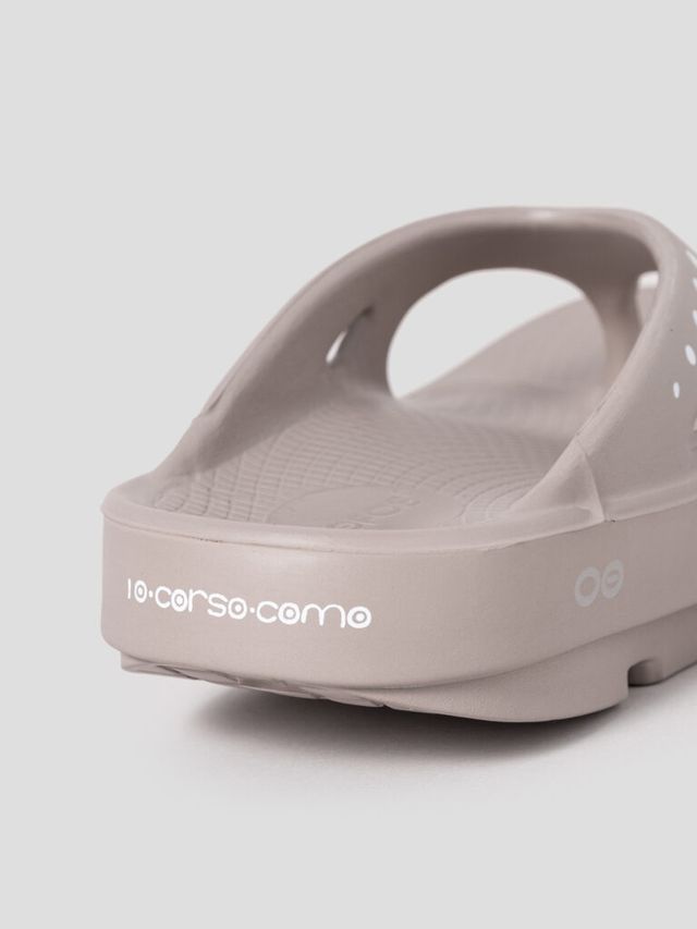 이들의 만남은 2024년에 이어 두 번째인데요. 다가오는 여름, 가볍게 신을 수 있는 플립플랍을 협업 아이템으로 선정했습니다. 10 꼬르소 꼬모를 상징하는 색이자 클래식한 매력을 자랑하는 블랙, 아이보리에 시그니처 로고와 그래픽을 수작업으로 프린트했죠. 또 충격을 효과적으로 흡수하고 발의 피로 회복을 돕는 우포스의 OOFOAM 기술을 적용해 실용성도 챙겼죠.