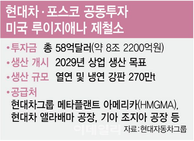 21일 현대차그룹과 포스코그룹은 ‘철강, 이차전지 소재 분야 등 포괄적 사업협력 위한 업무 협약식(MOU)’을 체결했다고 밝혔다. 양사의 이번 협약의 핵심은 미국 현지 제철소 공동 투자다. 현대차그룹이 미국 루이지애나주에 총 58억 달러(약 8조2200억원)를 투입해 건설하는 전기로 제철소에 포스코그룹이 공동 투자키로 했다. 완공 후에는 연간 270만톤(t) 규모의 열연 및 냉연 강판 등을 생산한다. 앞서 현대차는 제철소 투자의 약 50%가량은 외부에서 조달한다고 밝힌 바 있는데, 바로 포스코가 이 투자에 참여키로 한 것이다. 포스코는 일부 생산 물량을 직접 판매하는 방안 등도 검토 중이다. 다만 구체적인 투자액이나 지분율 등은 아직 공개되지 않았다. 포스코는 “지난 10여년간 보호무역장벽으로 제한됐던 북미 철강시장 진출의 교두보를 확보하게 됐다”고 했다.