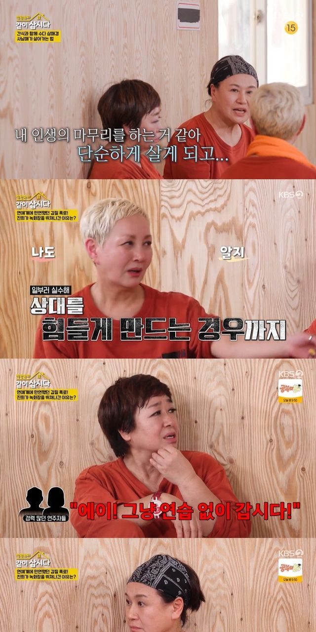 이후 홍진희는 분장실에 들어가 선배들에게 상황을 설명하고 녹화를 하지 않은 채 집으로 돌아갔다고. 박원숙은 "그 쪽에서도 잘못을 했지만 작품에 잘못을 초래한 건 너다"며 덧붙이자 홍진희는 삐진 듯한 모습을 보여 웃음을 자아냈다.