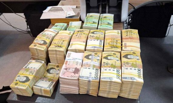 서울 송파경찰서가 자금세탁 일당으로부터 압수한 범죄수익금으로 추정 현금 5억1260만원이 놓여있다. (사진=서울 송파경찰서)