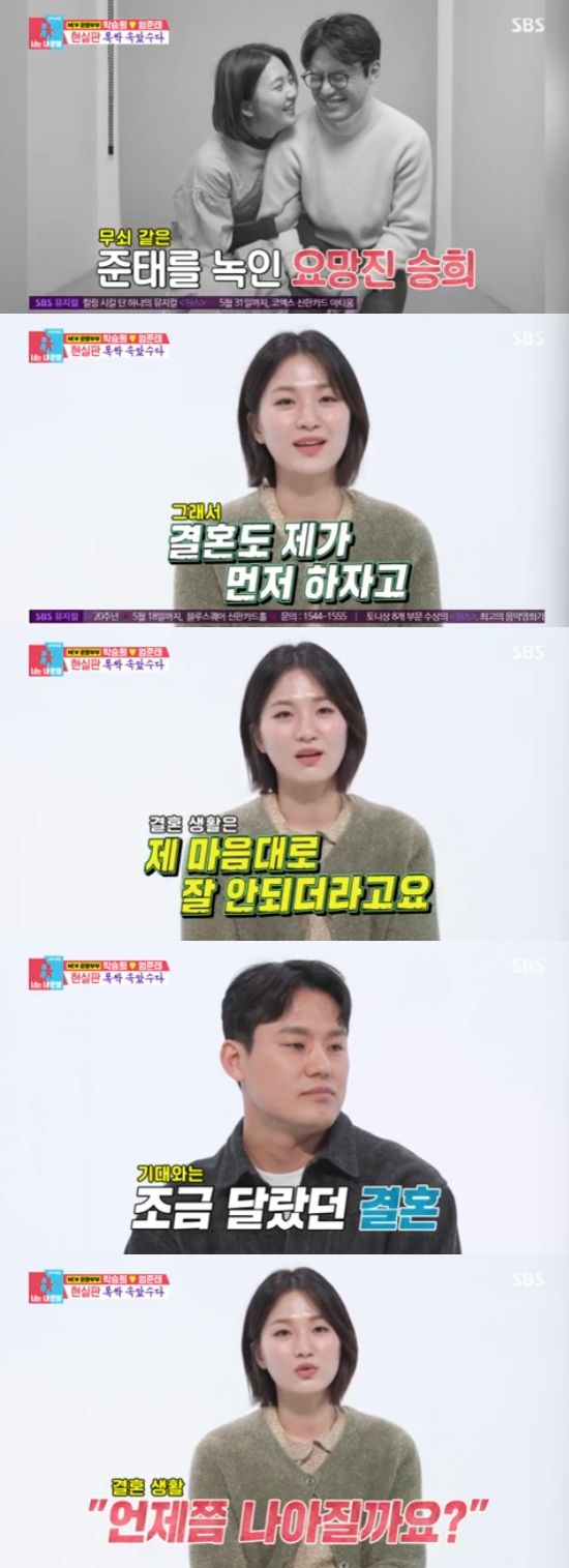 21일 방송된 SBS 예능 프로그램 '동상이몽2 - 너는 내 운명'에서는 새로운 운명커플로 합류한 전 스케이트 국가대표 박승희♥엄준태 부부의 일상이 공개됐다.