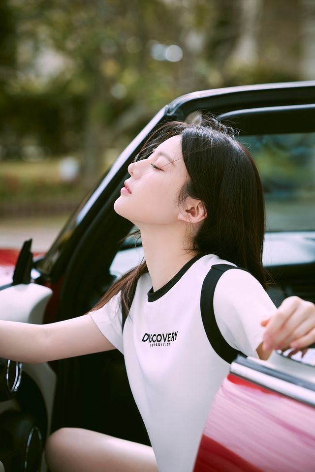 시스루 화이트 니트와 블랙 보브컷의 조화, 케플러 김다연