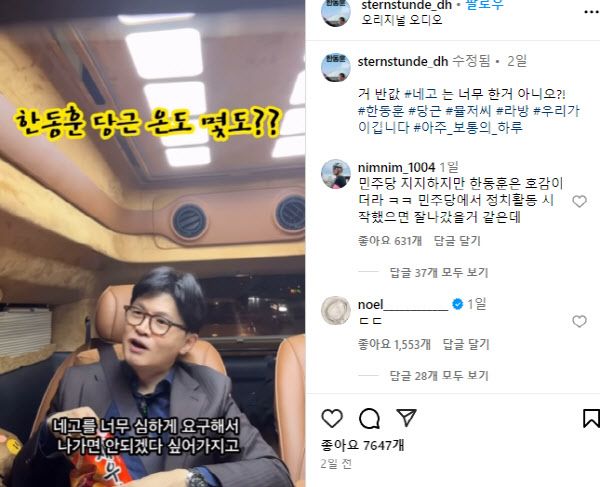 한편, 이 영상은 한 후보의 팬 계정 SNS에도 올라와 화제가 됐다. 장제원 전 의원의 아들인 노엘도 “ㄷㄷ”라는 댓글을 달았다.
