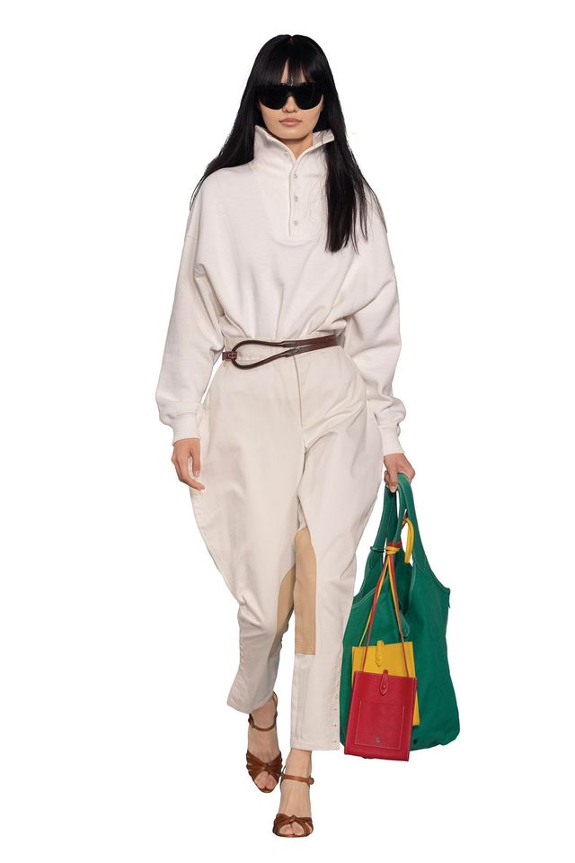 이번 시즌, 햄프턴은 단순한 베뉴를 뛰어넘어 랄프 로렌 컬렉션을 관통하는 대주제이기도 하다. 환상적인 대자연에서 영감을 받아 해안가의 아름다운 순간을 하우스의 아이코닉한 아이템에 녹여냈다. 청량한 바다의 윤슬이 비친 순간을 표현한 블루 그러데이션 시퀸 드레스와 함께 새하얀 모래사장이 떠오르는 테일러드 수트, 황금빛으로 반짝이는 태양을 수놓은 듯한 화려한 비즈 스커트는 물론 여유롭게 캣워크를 걷는 모델들의 자태가 마치 해안가에서 휴식을 만끽하는 모습을 보는 듯했다. 그도 그럴 것이 실제로 미스터 로렌은 햄프턴 해안가 드라이브를 즐기고 활기찬 농장 가판대와 매력적인 지붕이 갖춰진 별장, 바닷바람이 부는 모래언덕과 끝없이 펼쳐진 푸른 하늘과 바다에 소중한 추억이 있다. 이번 랄프 로렌 컬렉션에서 주목할 것이 또 하나 있다. 바로 새로운 백 ‘더 랄프(The Ralph)’ 라인을 공개한 것. 자동차를 사랑하는 그가 빈티지 자동차의 인테리어에서 영감을 받아 구조적인 디자인으로 완성한 것이 특징이다. 그 외에도 잔잔한 바다를 투영한 블루 컬러의 한정 에디션 백 ‘2025 폴로 플레이’도 새롭게 선보였다.