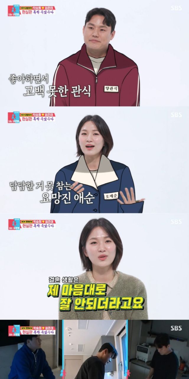 ‘결혼 5년 차’ 박승희♥엄준태 부부는 넷플릭스 ‘폭싹 속았수다’의 애순-관식 커플의 현실판을 연상케하는 일상으로 눈길을 끌었다. 연애 4개월 만에 상견례 후 결혼까지 초스피드로 했다는 前 스케이트 국가대표이자, SBS 예능 ‘골 때리는 그녀들’에 출연 중인 박승희는 “제가 먼저 고백했다. 좋아하는데 기다리는 게 너무 답답하더라”며 “남편은 ‘폭싹 속았수다’의 관식이 같다”고 소개했다.