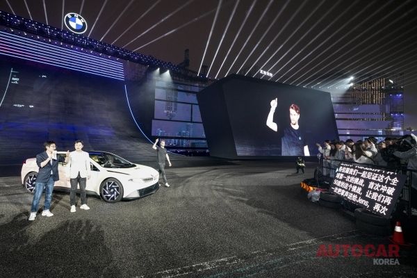 행사장엔 수백 명 넘는 취재진, 사업가 등 초대받은 사람들이 몰렸다. 중국인 55%, 독일인 40%, 일본인과 한국인 5% 비율 정도다. 초대형 스크린으로 한쪽 벽이 가득 찼다. 대기장 콘셉트 컬러는 보라색. 트랙으로 쓰이는 곳 중앙에 두 개의 스탠드를 두었다. 메인 스크린은 '노이어 클라쎄'에 새롭게 장착되는 중앙 터치 스크린 형상을 본떠 만든 것이다. 짧은 홍보 영상이 끝나고 전문 드라이버들이 M4, M2, ‘BMW 비전 드라이빙 익스피리언스 프로토타입’ 등 다양한 모델을 몰고 등장한다. 이번 쇼의 주인공인 '비전 BMW 드라이빙 익스피리언스'가 드리프트를 하면서 시선을 사로잡았다.