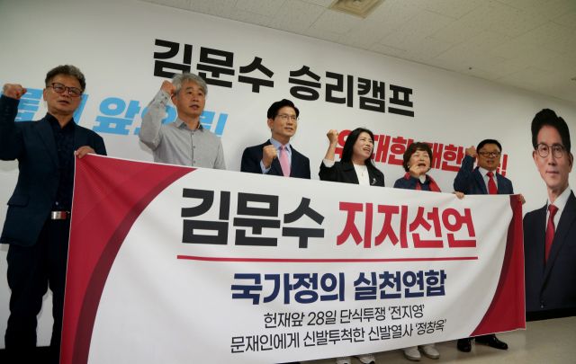 김 전 장관은 이날 서울 여의도 대하빌딩 캠프 사무실에서 반값월세존, 1인용 아파트·오피스텔 공급 등을 내용으로 하는 청년, 부동산 공약을 발표한 직후 같은 장소에서 국가정의실천연합이라는 단체의 지지선언 기자회견에 함께했다. 이 자리에는 윤 전 대통령 탄핵에 반대하며 헌재 앞에서 28일 간 단식한 전지영 씨와 2020년 국회를 찾은 문재인 전 대통령에게 신발을 벗어 던진 정창옥 씨가 참석했다.