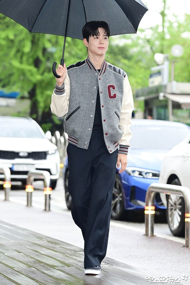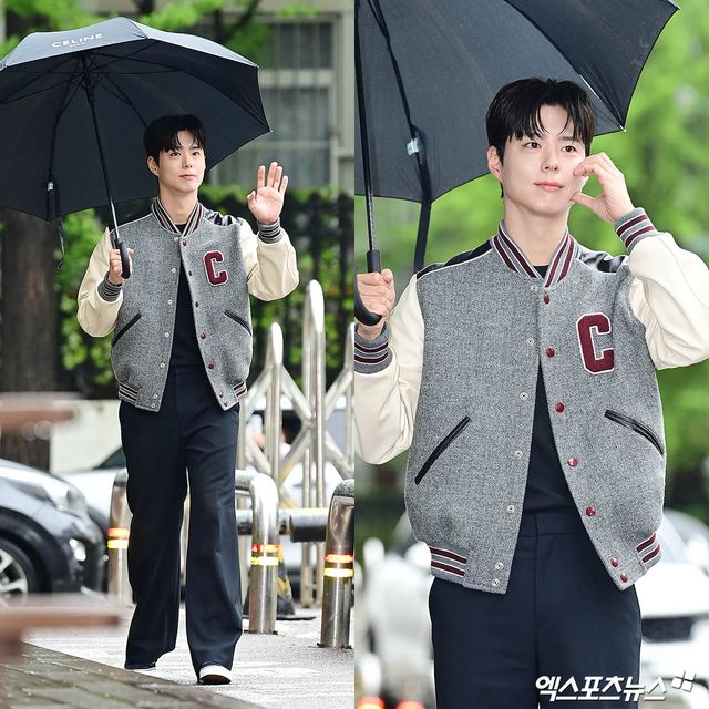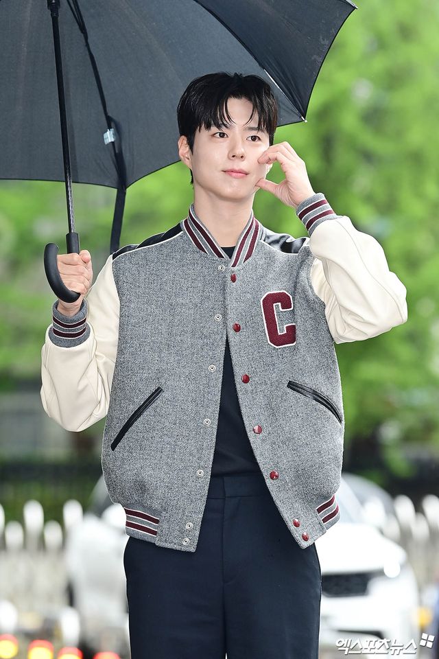 이날 녹화에 참석한 배우 박보검이 출근길에 포토타임을 갖고 있다.