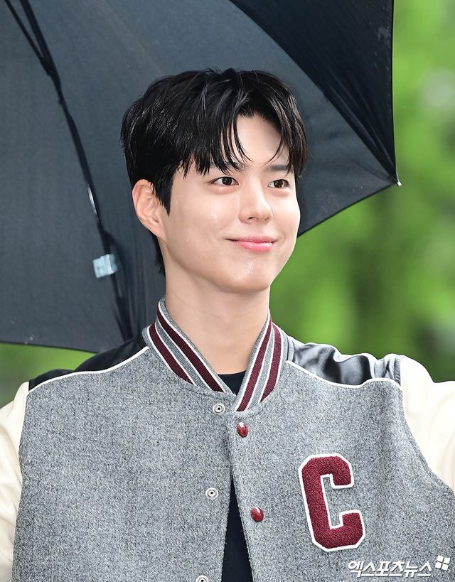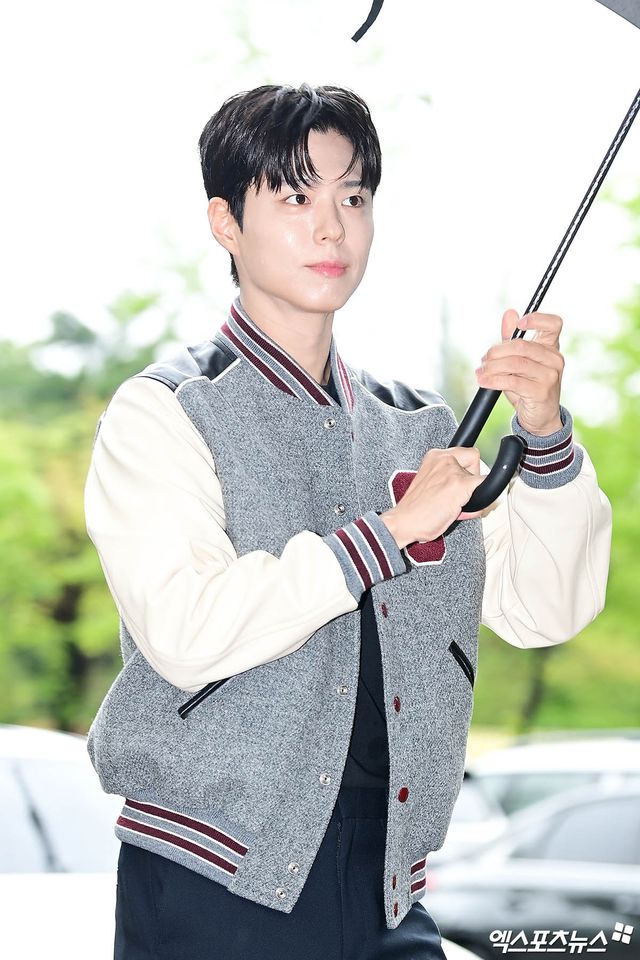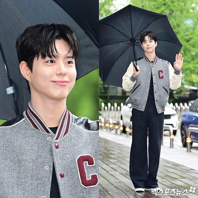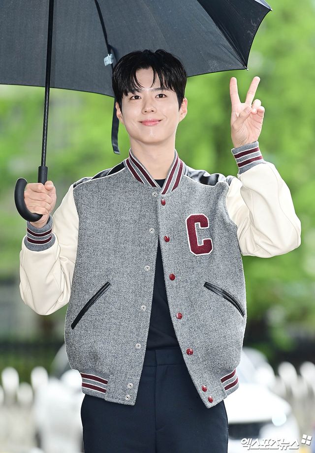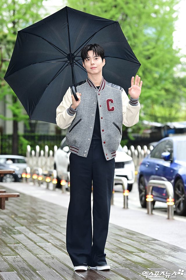 이날 녹화에 참석한 배우 박보검이 출근길에 포토타임을 갖고 있다.