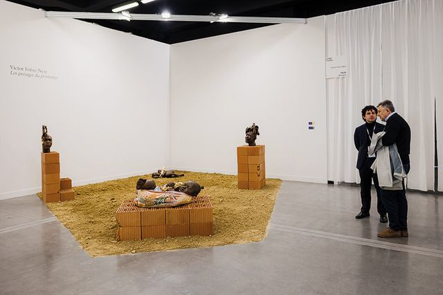 이 주제를 가장 선명하게 느낄 수 있는 섹션은 작년에 새로 개설된 ‘포털(Portal)’이었다. 로마 폰타치오네 멤모(Fondazione Memmo)의 큐레이터 알레시오 안토니올리(Alessio Antoniolli)가 꾸린 이 섹션은 지리, 언어, 시간성 등에 대해 당연하게 여길 정도로 고착화된 개념에 의문을 제기하며 새로운 관점을 부여하는 갤러리 열곳의 작품들을 선보였다. 가나의 예술대학 쿠마시(KNUST) 내에서 설립된 예술 집단 멤버들의 작품으로 구성한 아팔라초 갤러리(Apalazzo Gallery), 1960~1980년대에 전시 방식의 파격을 선언한 작가 루시 오터(Lucy Otter)의 작품을 선보인 프란코 노에로 갤러리(Galleria Franco Noero), 사회적 흐름과 시스템에 대한 비판적 태도를 작업에 반영하는 독일 작가 요조나스 로스마이슬(Jonas Roßmeißl)의 개인전을 소개한 클렘스(Klemm’s) 갤러리 등 각기 다른 흥미로운 주제를 지닌 이 섹션의 작품들에서 공통적으로 발견되었던 건 전통적 개념을 거스르거나 전복하는 관점이었다. 이 섹션의 하이라이트는 P420 갤러리에서 소개한 카메룬 세라믹 아티스트 빅터 포트소 니예(Victor Fotso Nyie)의 작품이었다. 아프리카 토착 문화와 지금 자신이 머무는 현대화된 세계 사이의 연결점을 고민하며 과거와 미래, 영적과 물질적 시공간 사이 어딘가로 관객을 이끄는 작가의 작품은 페어가 이어지는 내내 가장 많은 질문을 받으며 관심을 모았다.
