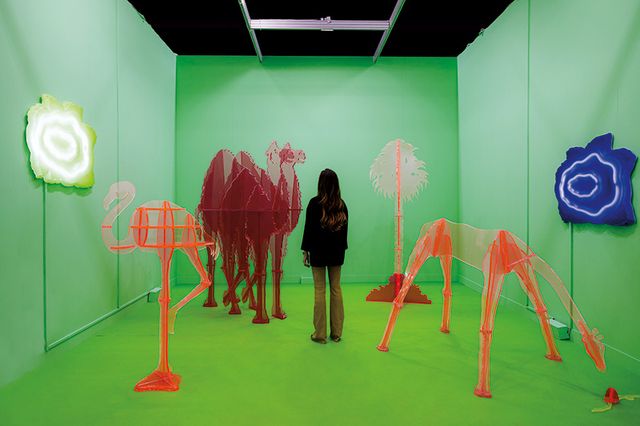 도전과 실험을 상징하는 신진 갤러리가 모인 섹션은 대개 전시장 주 공간에서 조금 벗어난 공간에 자리하는 편인데, 올해 미아트는 ‘이머전트(Emergent)’ 섹션을 가장 먼저 만나도록 초입에 두었다. 덕분에 입장과 동시에 젊은 갤러리스트와 작가의 상쾌한 기세를 가득 흡수할 수 있었다. “현대미술과 이를 소구하는 장에서 가장 뜨겁게 일어나는 담론을 포착한 곳입니다.” ‘이머전트’ 섹션을 구성한 큐레이터 아틸리아 파토리 프란키니(Attilia Fattori Franchini)의 말처럼 독특하고 생경한 구조의 작품들은 도전 정신에만 머물지 않고 역사, 기술, 탈자본주의 등 그 안에 각자의 담론을 피력하고 있었다.