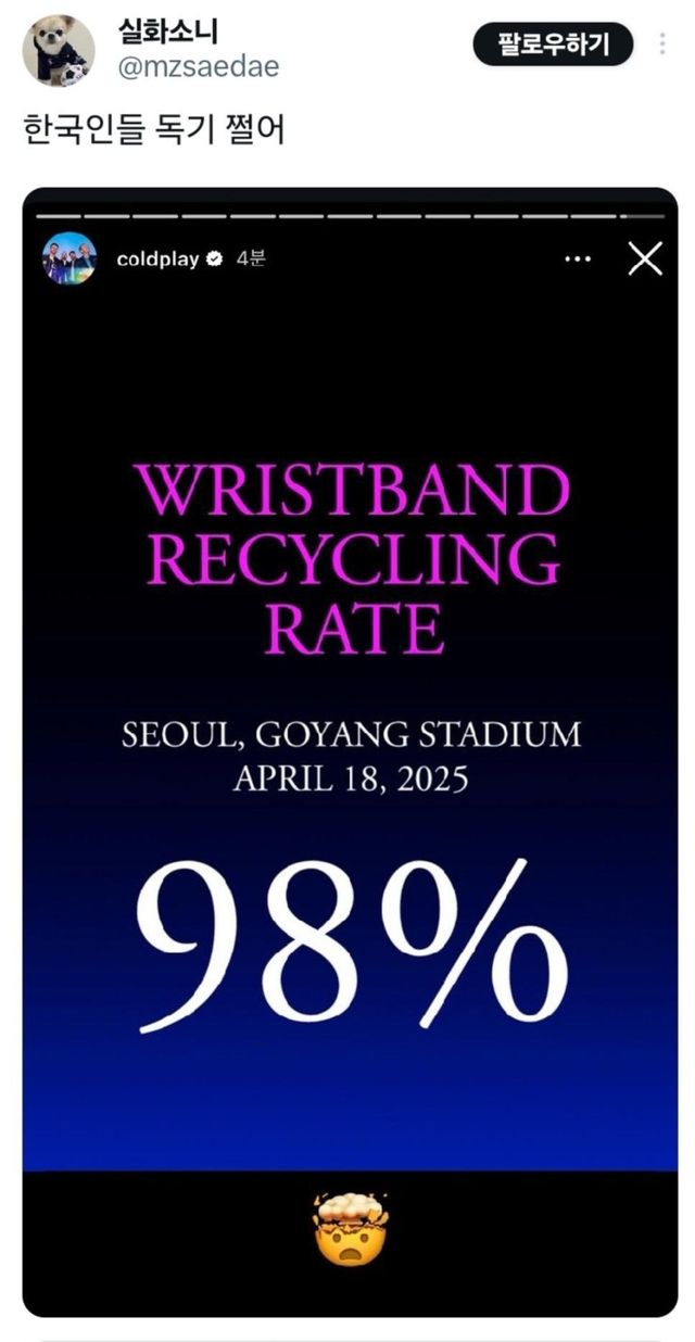 이 자일로 밴드라고 하는걸 최대한 재활용해서 사용하기위해 콘서트가 끝나면 회수하고 국가별 반환률도 콘서트장 내에 띄워주고 있다는 사실...!