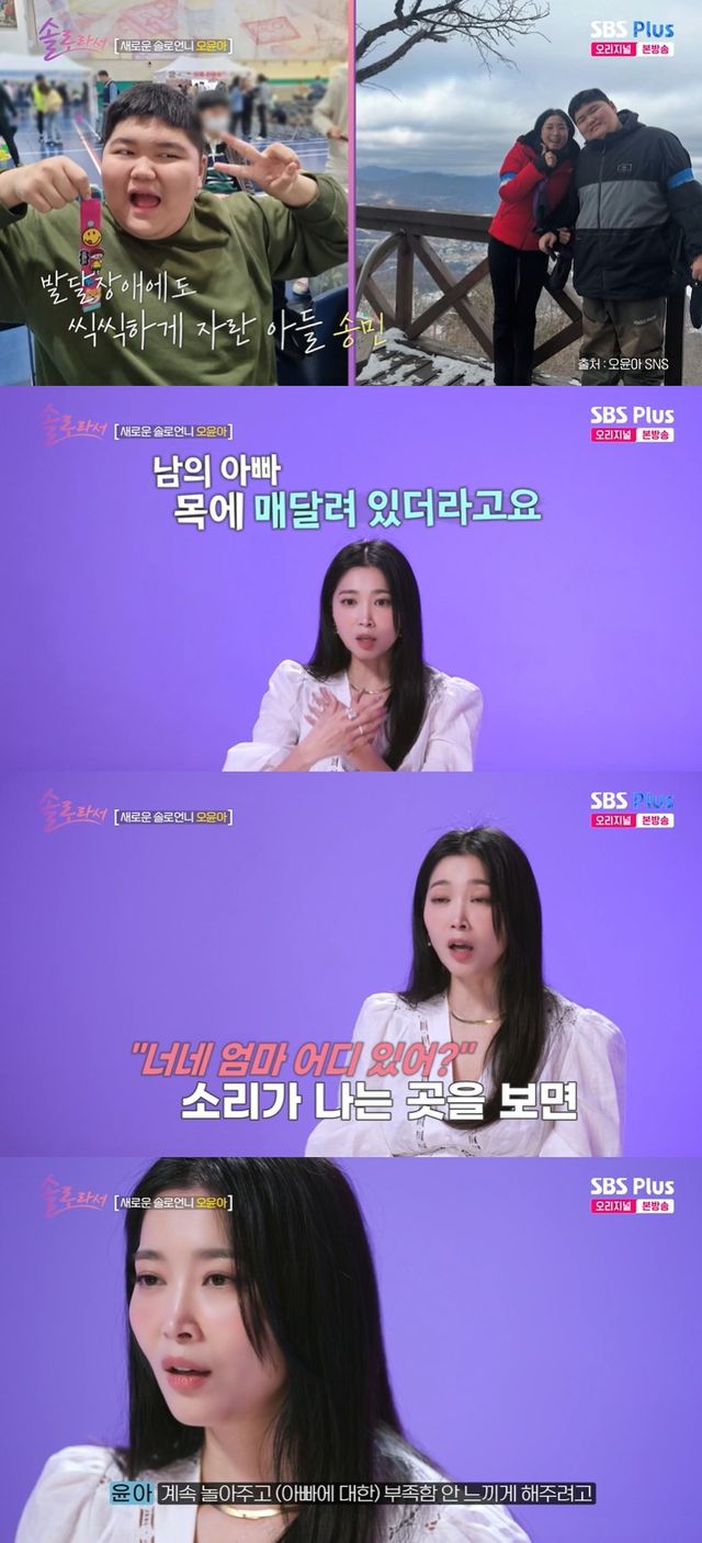 22일 방송된 SBS Plus, E채널 '솔로라서' 16회에서는 이혼 9년 차인 배우 오윤아가 출연해 아들 송민과의 생활을 언급했다.