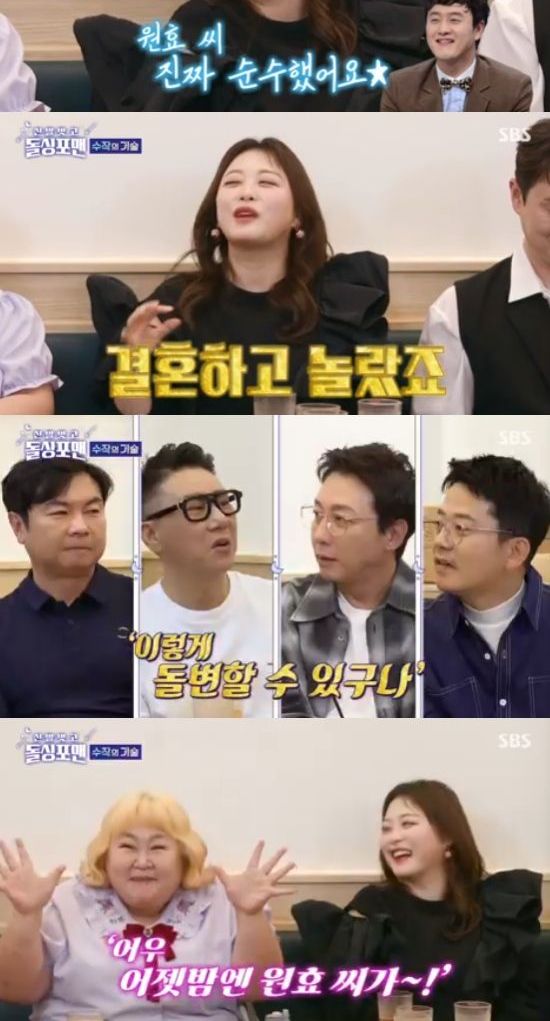 22일 방송된 SBS 예능 프로그램 '신발 벗고 돌싱포맨'에서는 김원효♥심진화, 김민기♥홍윤화 부부가 출연해 이야기를 나눴다.