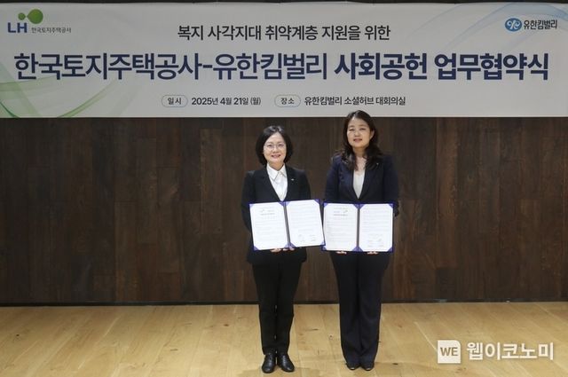 LH는 지난 21일 유한킴벌리 본사에서 유한킴벌리와 사각지대 취약계층 지원을 위한 사회공헌 업무협약을 체결했다고 22일 밝혔다.
