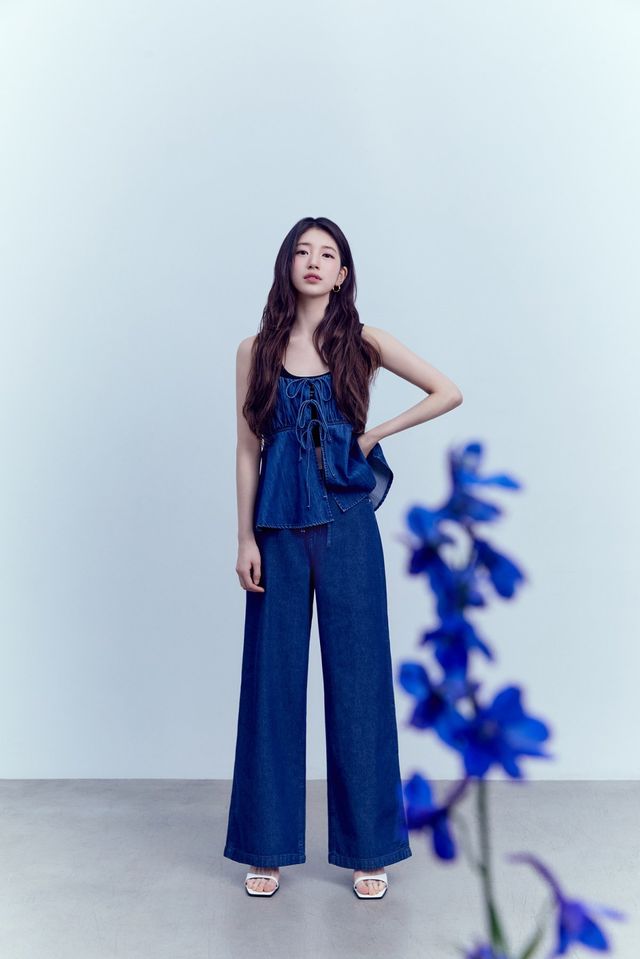 화보 속 수지는 데님 소재의 슬리브리스 탑과 드레시한 와이드 팬츠를 매치해 청량감이 느껴지는 데님 온 데님 스타일링을 선보였다. 또 다른 화보에서는 트위드 베스트와 핑크 컬러의 가디건 셋업 등으로 봄의 로맨틱한 무드를 보여줬다. 이외에도 자카드 패턴, 사이드 핀턱 등 게스 특유의 디테일이 돋보이는 트렌디한 핏의 데님 팬츠들을 멋스럽게 소화했다.