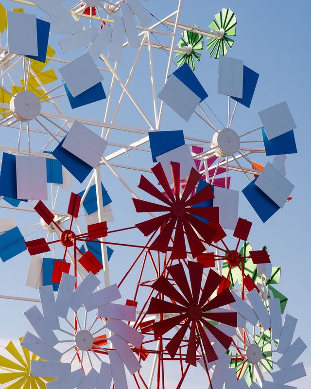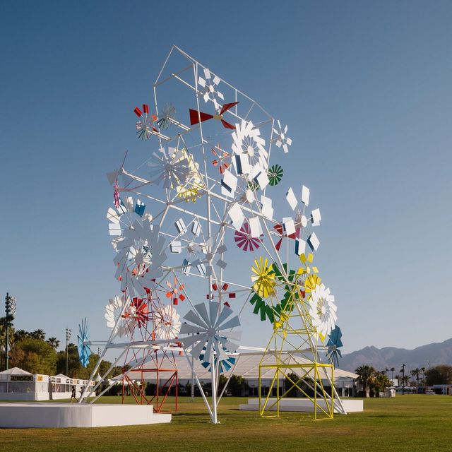 마지막은 이사벨+헬렌(Isabel + Helen)이 디자인한 ‘Take Flight’입니다. 19세기 초기 항공 디자인을 따와 3개의 타워로 구성된 60피트 높이의 구조물을 세웠어요. 그 사이엔 수많은 바람개비를 달아 코첼라에 불어오는 바람을 시각적으로 표현했습니다. 코첼라의 뜨거운 열기만큼 힘차게 돌아가는 바람개비의 소리가 공연 내내 이어졌다고 하네요.