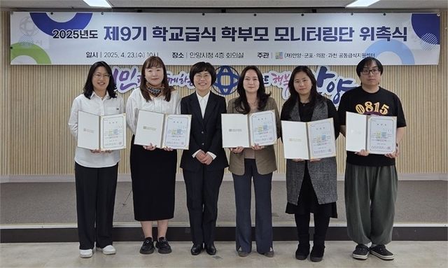 (안양=뉴스영 공경진 기자) (재)안양·군포·의왕·과천 공동급식지원센터(이사장 최대호 안양시장, 하은호 군포시장, 김성제 의왕시장, 신계용 과천시장)는, 23일 안양시청에서 제9기 ‘2025년 학교급식 학부모 모니터링단’ 위촉식을 열고 본격적인 활동에 돌입했다.