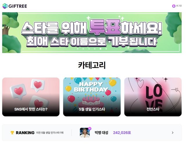스타를 위한 신개념 팬 투표 서비스인 '기프트리'에서 '컴백이 기대되는 스타' 투표의 후보를 공개했다. 이번 투표는 4월 24일부터 5월 13일까지 3주간 진행된다.