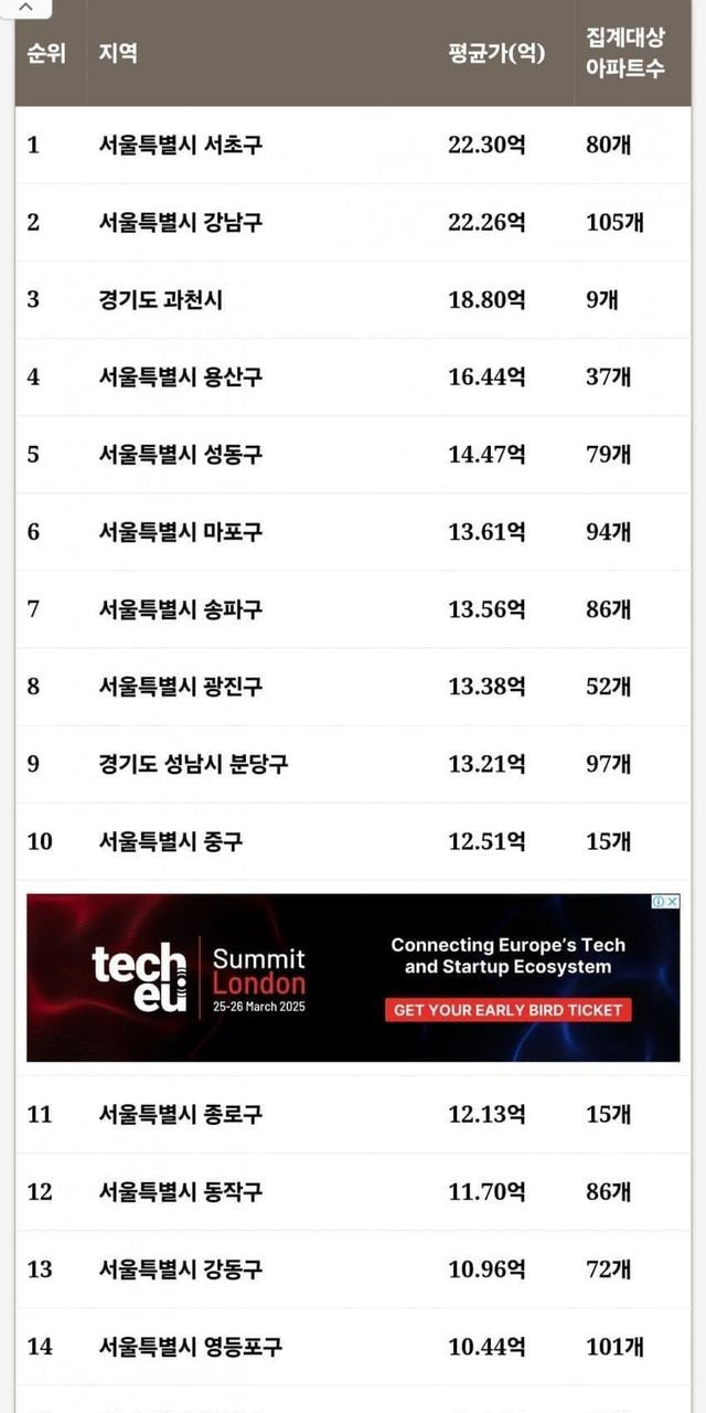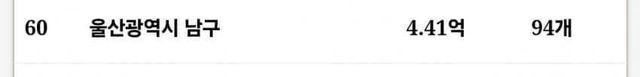 평균가기준 국내 상위 60개 동네중 광주는 단 한곳도 이름을 올리지못하고 전멸했다.