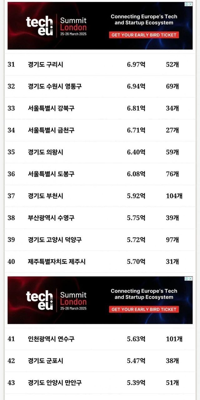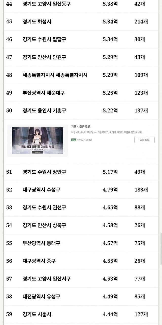 물론 대부분이 수도권이지만, 그외에도 부산, 대구, 대전, 울산 광역시들도 이름을 올렸다.